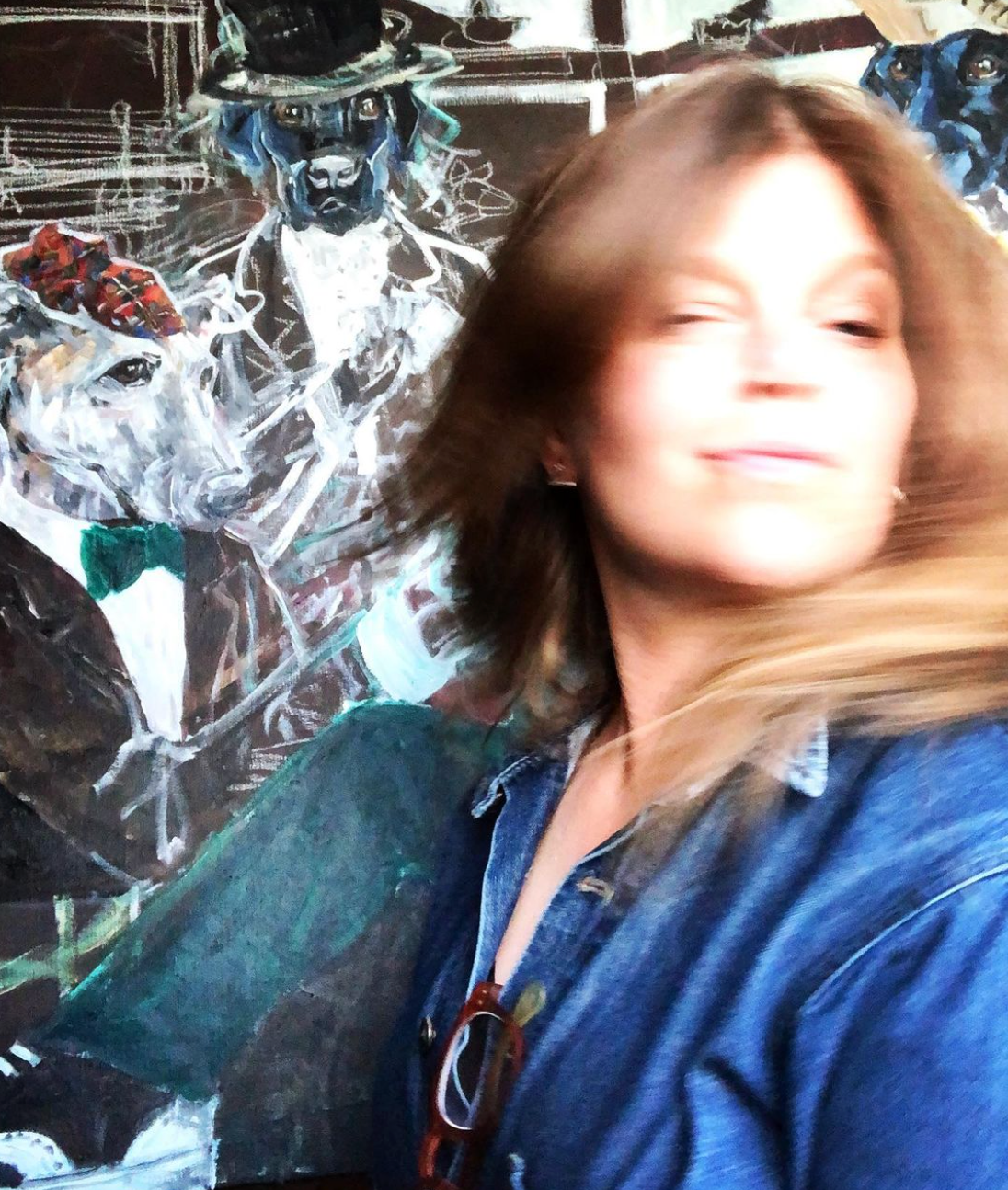 In recent years Helene’s art has been focused on portraits of dogs taking on human characteristics and matching attributes. The settings displayed in the paintings are carefully chosen considering the model, the context, and the unique relationship between the dog and its owner. In the world of fables, a genre well-known to both children and adults, such artistic freedom is permitted.